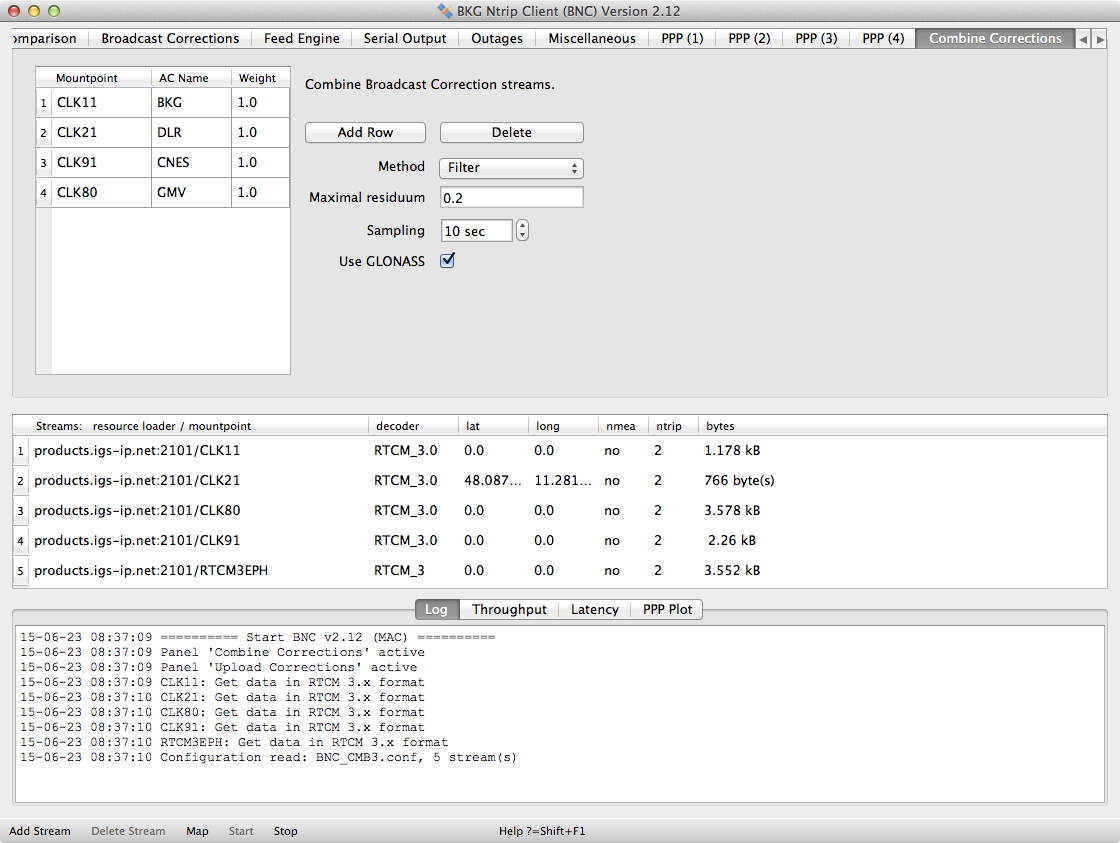 The BKG Ntrip Client (BNC) and its Qt Graphical User Interface (GUI) has been developed for