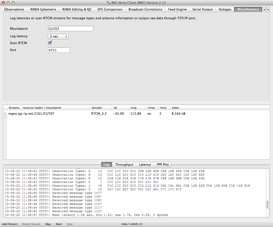 | 21 | RTCM message numbers, latencies and observation types logged by BNC | 2.12 |