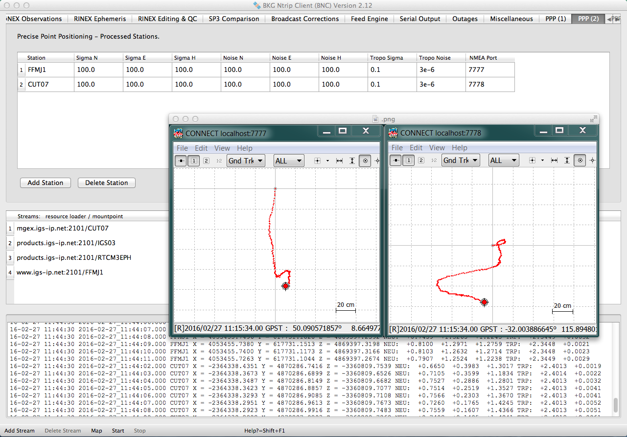 | 33 | BNC producing Broadcast Ephemeris stream from globally distributed RTCM streams; upload in RTCM format to an Ntrip Broadcaster | 2.16.3 |